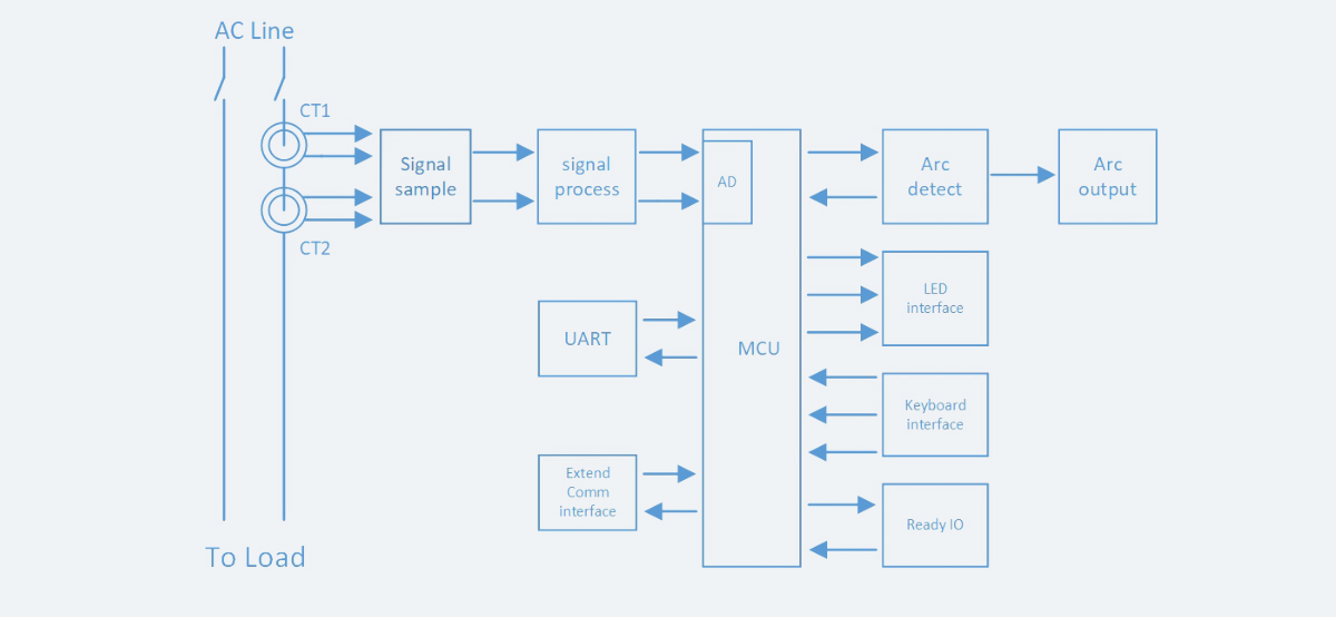同時此模組可提供UART等接口進行通信,與外部電路進行通訊或將報警信息上傳給監控設備,從而有效預防故障電弧火災的發生。